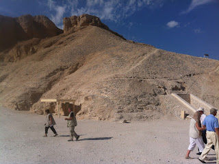 Inside the Valley, no pictures allowed...I snapped this one quickly. These are the entrances to the tombs.